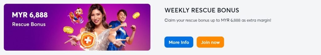 Rescue Bonus provides members with up to MYR 228 out of losses back weekly. So, you cannot say that it is not your lucky day to win.