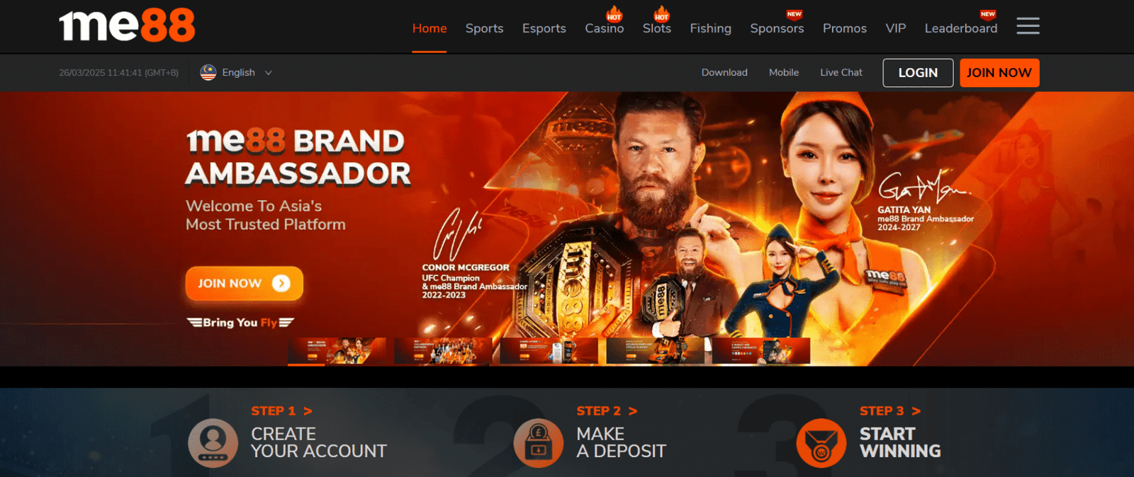 1. Visit the official me88 website and click the prominent “Join Now” button on the homepage. This takes you directly to the registration page.